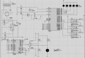 其中电源电路采用全波整流电路,图中的二极管IN4007是用来防止输入端短路时输出端电容向LM317EMP放电的。220V市电经过降压后得到12V交流电,经二极管整流成脉动直流电,经过电容滤波后再又经过LM317EMP稳压得到5V的直流电供系统工作,1000uF的电容是起一个再次滤波的作用。