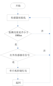 在一个可以容纳几百人的大教室,使整个教室的照明可以达到智能控制的程度。照明系统有两种状态,一个是手动控制开关,此状态教室内灯分属于几个不同开关控制。这个只有在紧急的情况时才会采用此状态工作,另一个状态是全自动状态,在此状态工作时,每个电灯有其自己需照明的区域,各个区域的电灯互不干扰。在满足光亮强度达到一定数值时,照明系统处于锁定状态,即不管怎样电灯都不会亮。当光照强度低于一定数值时(即不能满足照明的需要),每个电灯测到属于其自己的监测范围内有人出现,即热释红外探测传感器模块探测到有人时,就会启动电灯。