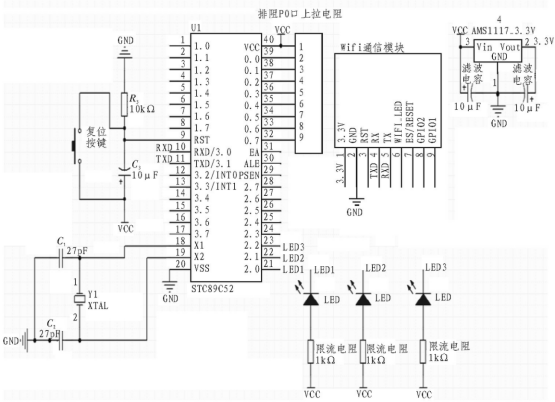 微控制器是采用了MCS-51内核的STC89C51系列52单片机,MCS-51是8位CPU,具有性能高、成本低、功耗小的特点。STC89C52处理性能强大,低功耗、高性能CMOS8位微控制器;不仅满足了上述对MCU的所有需求,并且目前已经得到了非常广泛的应用,拥有较成熟的开发经验和技术的借鉴;其次存储器够大,给WiFi智能网卡驱动移植和TCP/IP协议移植提供支持。目前STC89C51系列开发最广泛和常用的开发环境是keil,使用熟练简单,开发工具和仿真工具采用SEGGER公司为支持仿真ARM内核芯片推出的JTAG仿真器,价格较低,降低了开发成本。
